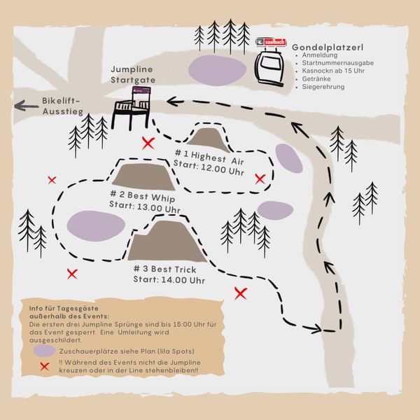 Die ersten drei Jumpline Sprünge sind bis 15:00 Uhr für das Event und deren TeilnehmerInnen gesperrt. Eine Umleitung wird ausgeschildert.
