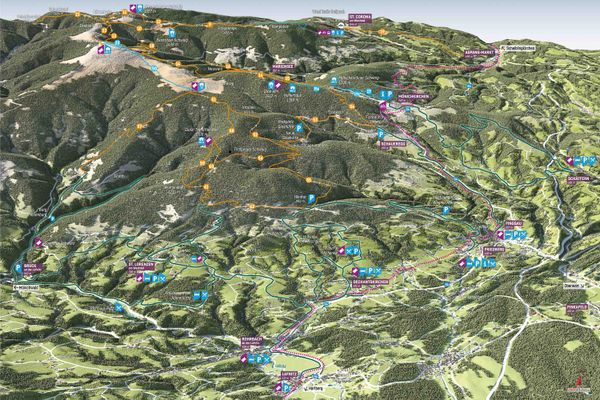 Trail térképek a községházákban, vendéglőkben és a Wexl Trails pénztáránál, St. Corona am Wechselben 2024 június elejétől elérhetők.